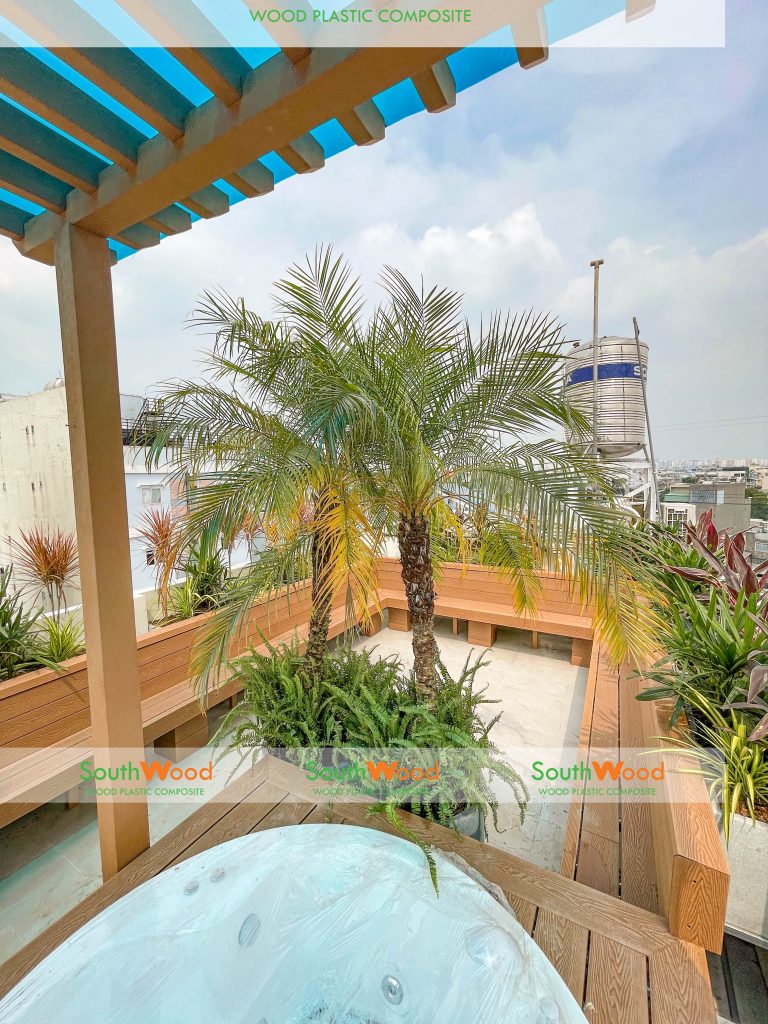 Ảnh công trình sân thượng ứng dụng sàn gỗ nhựa ngoài trời 1 lớp.