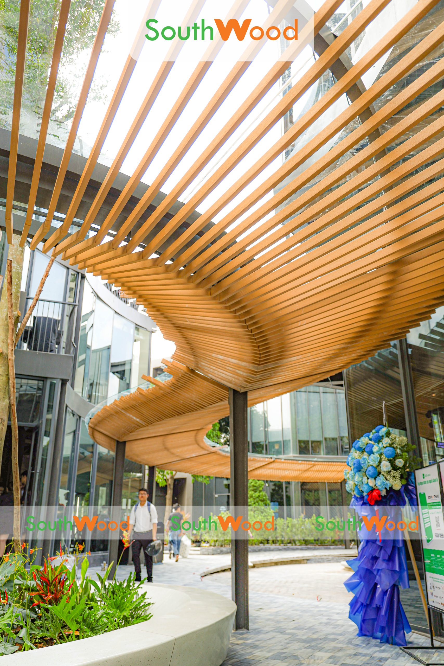 - Kết quả: Hệ khung xương inox kết hợp với lam gỗ nhựa ngoài trời 1 lớp tạo nên cấu trúc vững chãi, không có hiện tượng giòn gãy hay rung lắc.