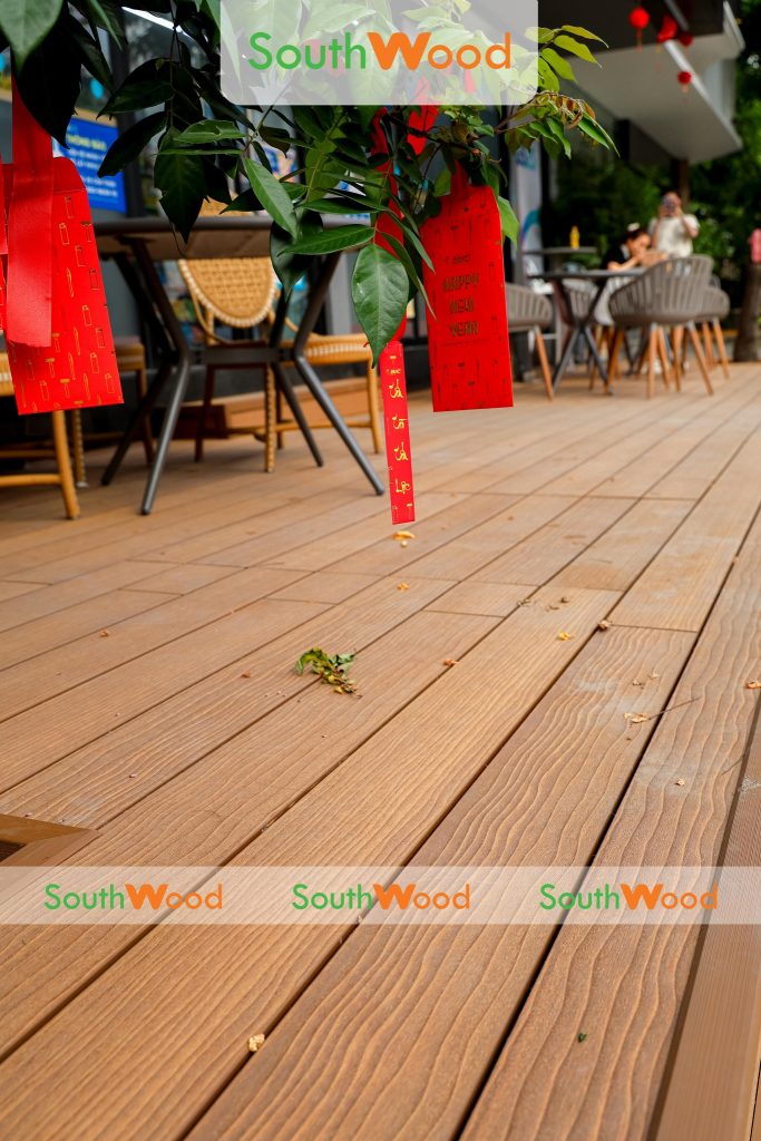 Sự kết hợp giữa bột gỗ tự nhiên – nhựa nguyên sinh – lớp phủ bảo vệ UV tạo nên một vật liệu có tuổi thọ lên đến 15–20 năm, thích hợp sử dụng ở những nơi có điều kiện thời tiết khắc nghiệt như Việt Nam: nắng nóng kéo dài, mưa nhiều, độ ẩm cao và đặc biệt là môi trường biển.