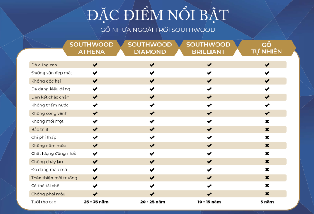 Sàn gỗ nhựa ngoài trời SouthWood sở hữu: