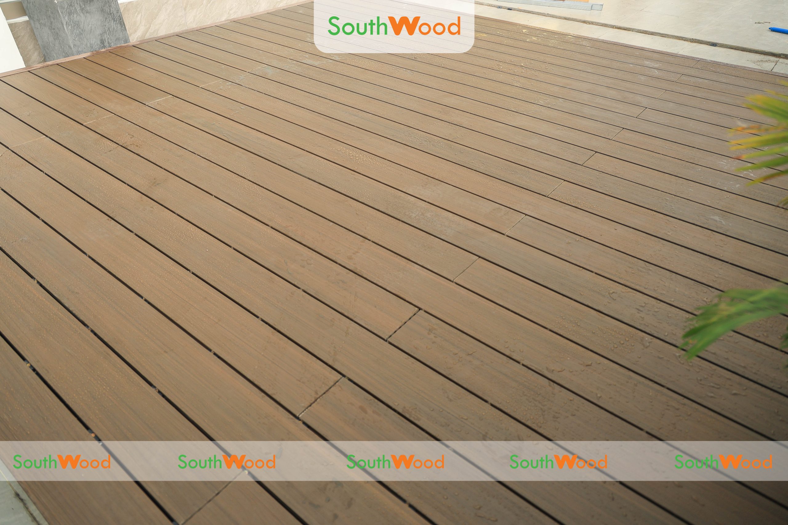 Nhờ tỷ lệ phối trộn tối ưu này, sàn SouthWood vừa giữ được vẻ đẹp tự nhiên của gỗ, vừa khắc phục hoàn toàn các nhược điểm của gỗ tự nhiên khi sử dụng ngoài trời.
