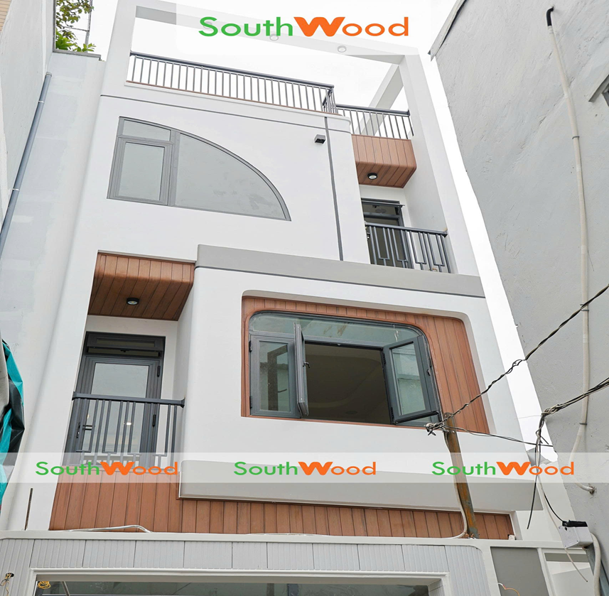 Hình ảnh căn nhà phố sử dụng tấm ốp PVC đồng điệu sang trọng