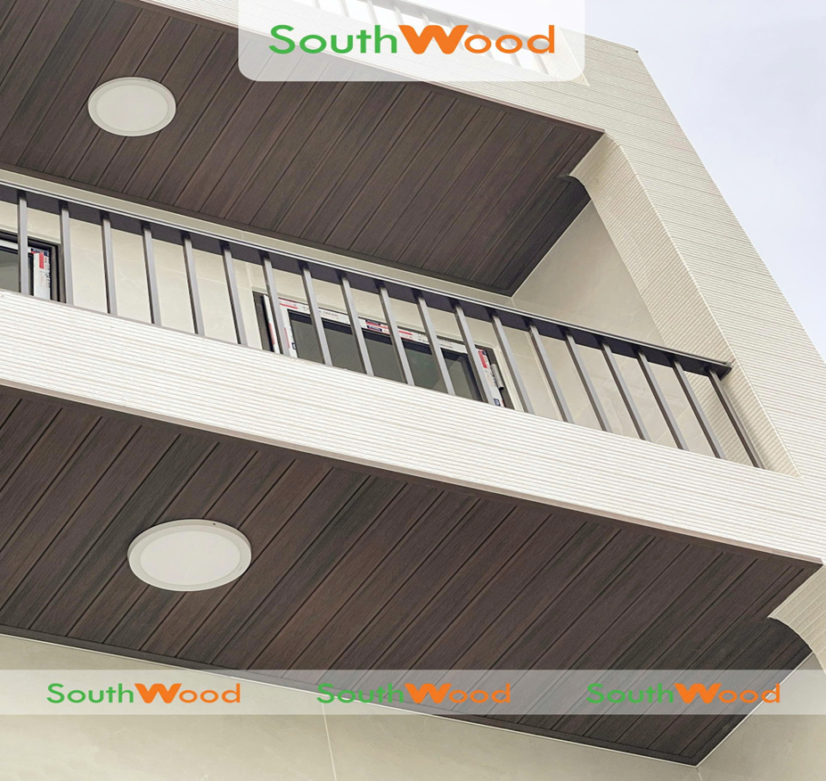 Hình ảnh công trình sử dụng tấm ốp gỗ nhựa PVC cho khuôn viên ban công